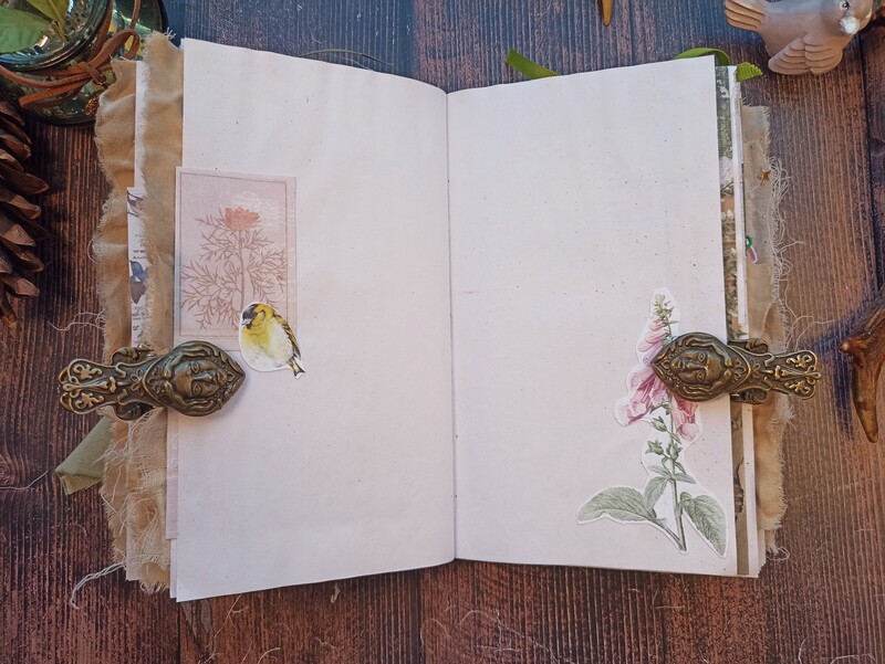 This beautiful botanical nature junk journal features a handmade design inspired by the forest and butterfly motifs. Crafted with love, it showcases a charming collection of decorated pages filled with pressed flowers, lush greenery, and delicate butterfly illustrations. Perfect for scrapbooking, journaling, or capturing your nature-inspired thoughts, this journal combines rustic charm with artistic embellishments, making it a unique and inspiring keepsake for nature lovers and creative souls alike.